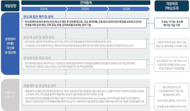 | · 국내 OSAT 및 IDM 업체들의 사업화 및 기술 고도화를 위해 소재 국산화 및 공정기술 개발