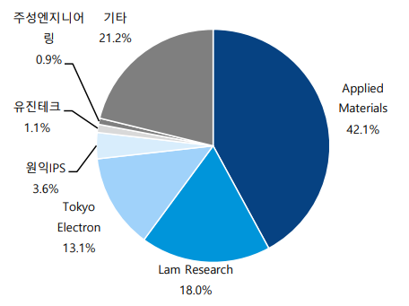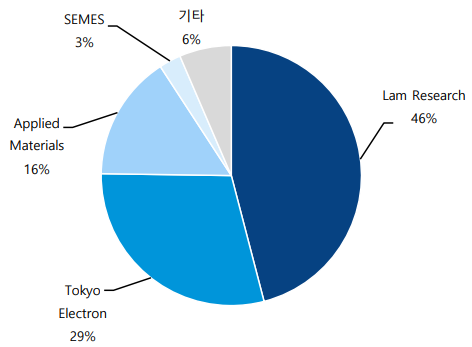 ○ 업체는 점유율 순으로 Lam Research, Tokyo Electron, Applied Materials 등이 있으며 대부분의 식각장비를 해외 업체에서 생산