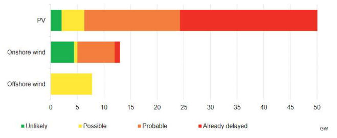 □ 코로나-19로 인해 2020년 2, 3분기 경매 예정되어 있던 태양광 프로젝트가 연기되고 있으며, 연기 확정된 용량은 약 25GW