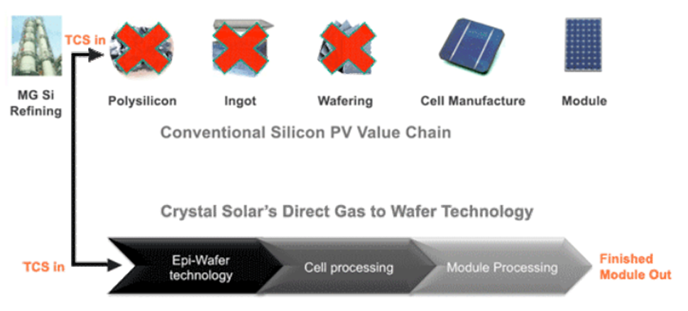 ▪기존의 초크랄스키 웨이퍼 제조공정보다 공정단계를 크게 단축할 수 있고 재료의 낭비가 적어 차세대 웨이퍼링 기술로 매우 주목받고 있음