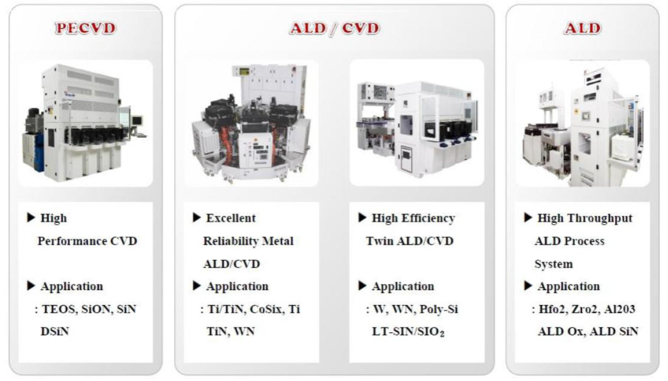 □ CVD는 기본적으로 반도체 공정 중 박막 증착 공정의 일종으로 개발되었으며 이후 디스플레이, LED 및 태양광 공정으로 파급되었음